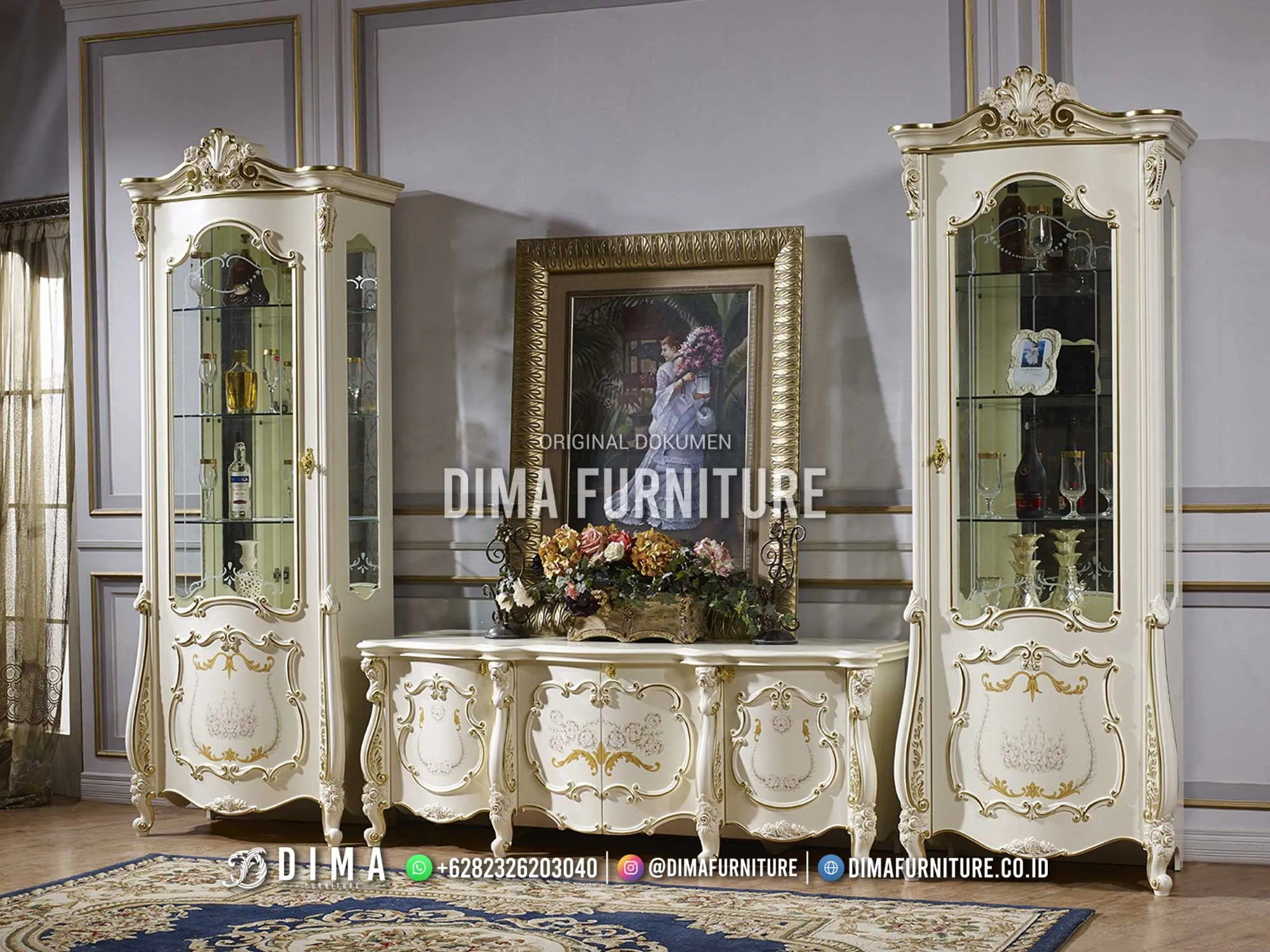 Furniture Bufet TV Ukir Classic Mewah Ivory Florence Set Elegan